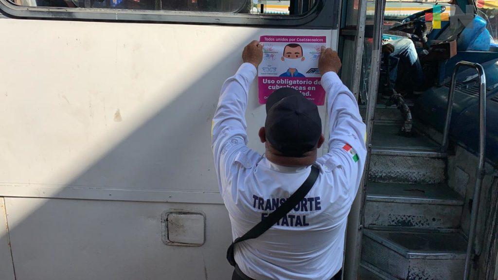 Coatzacoalcos, Ver.- Tras la disposición estatal de uso obligatorio de cubrebocas en el transporte público, la organización Todos Unidos por Coatzacoalcos pegó calcomanías en unidades del servicio urbano de la ciudad para fomentar la utilización de esta herramienta.