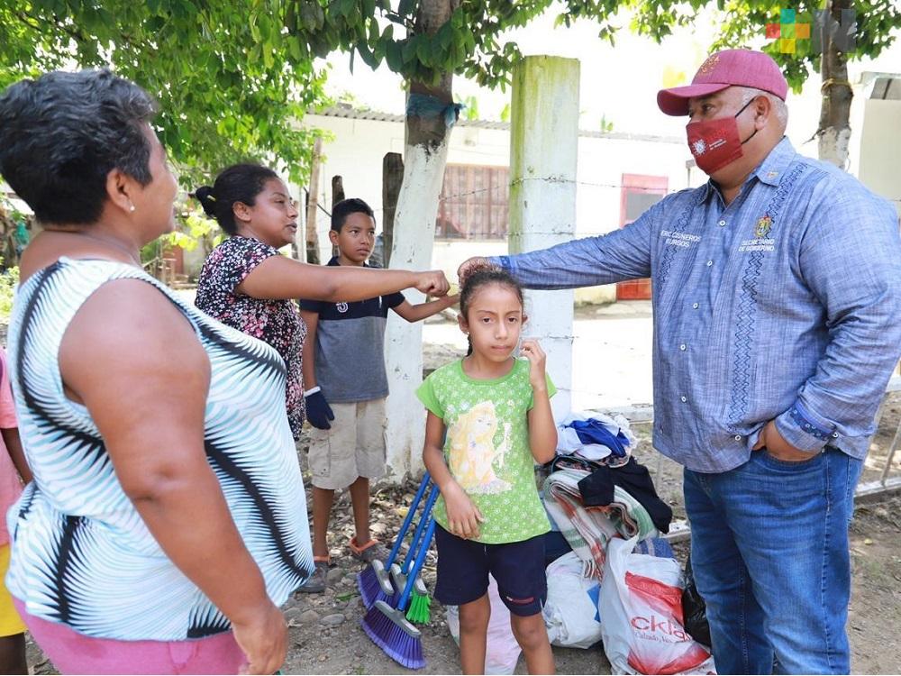 En Otatitlán, el titular de la Segob acudió a colonias inundadas, entre ellas la Ramón Torres Hernández, y a nombre del mandatario estatal entregó despensas, ropa, agua embotellada, entre otros víveres; además de constatar los trabajos de desazolve que realiza la CAEV.