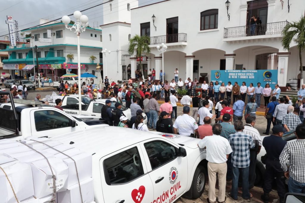 Catemaco, Ver.- En atención inmediata a la emergencia por las fuertes lluvias registradas en la región de Los Tuxtlas, el Gobierno de Veracruz entregó insumos a alrededor de 500 familias de diversas comunidades en Catemaco y Santiago Tuxtla.