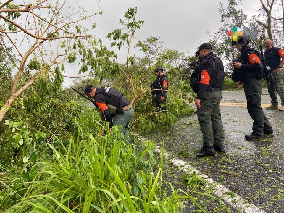 En la ciudad de Tuxpan y Cardel, efectivos de Fuerza Civil mantienen trabajos de remoción y limpieza; en Poza Rica y Martínez de la Torre, personal de la Dirección General de Tránsito y la Dirección General de Transporte del Estado retiraron árboles caídos; en Jilotepec, elementos de Policía Estatal implementan labores de limpieza en calles de la localidad del Pueblito.