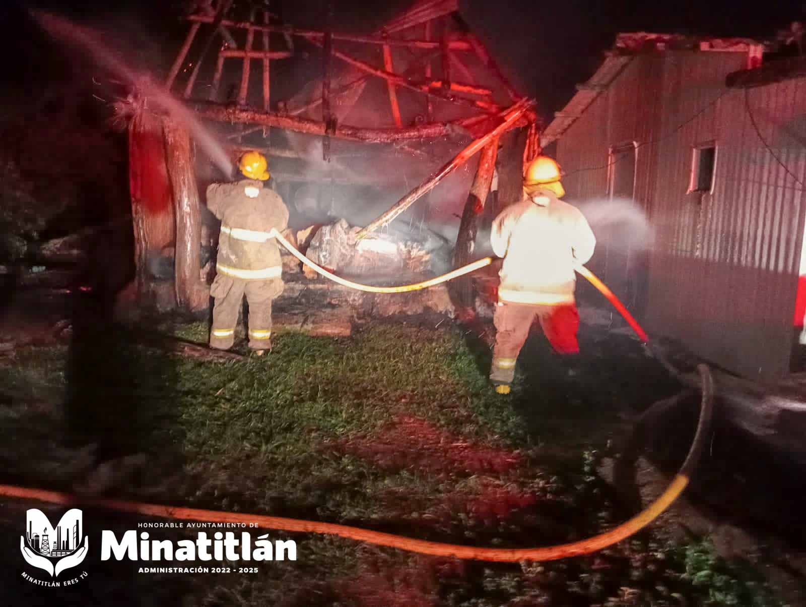 Minatitlán, Ver.- Elementos de la dirección de Protección Civil (PC) de Minatitlán, atendieron la noche del martes un incendio registrado en una palapa ubicada en la zona rural.