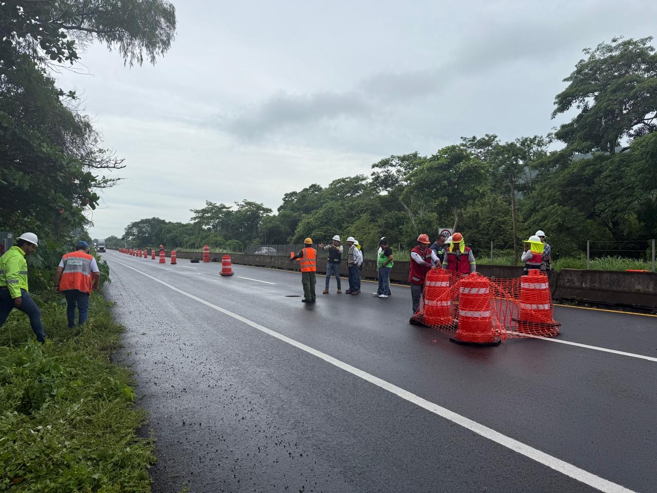 Xalapa, Ver.- La Secretaría de Infraestructura, Comunicaciones y Transportes en Veracruz atiende un hundimiento en la autopista Cardel–Poza Rica, tramo La Mancha–Cardel, a la altura del 192+600, en el sentido de sur a norte, justo pasando la entrada a La Mancha y antes del acceso al PIV de la Gasera, en la desviación hacia Palmas Abajo. La circulación está reducida a un carril.