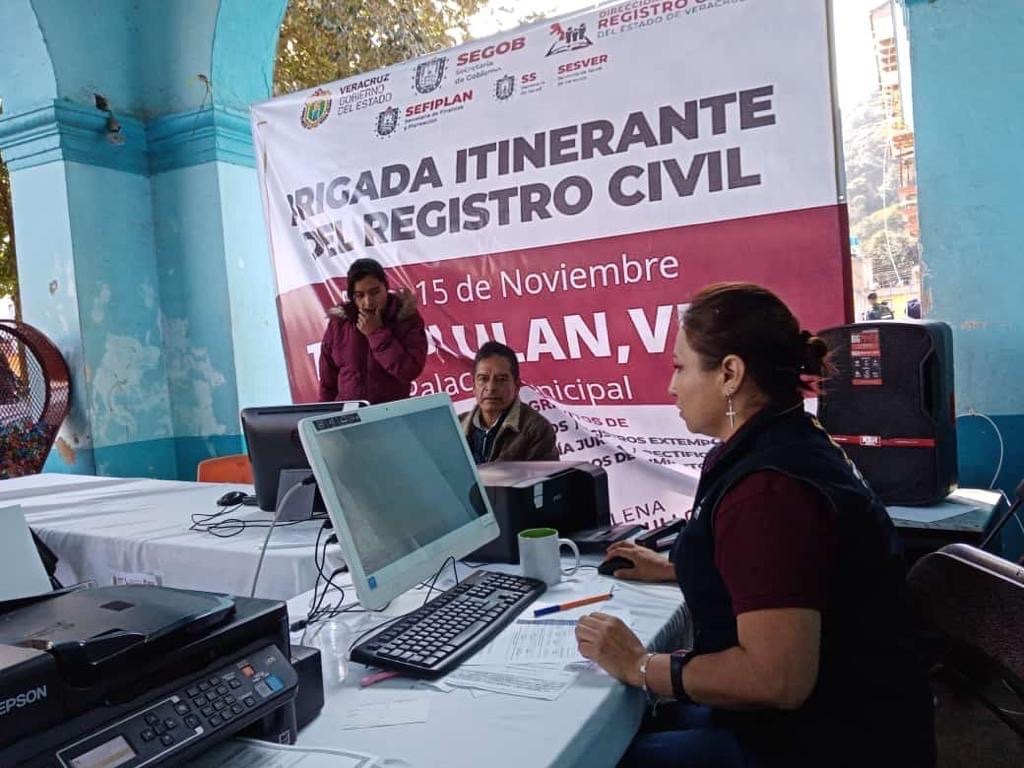 De forma simultánea, con las brigadas itinerantes del Registro Civil atendimos a la población de Tlacolulan, Tatatila, Tenochtitlán, Landero y Coss, Aquila, Tomatlán, Chinampa de Gorostiza, Tancoco y La Antigua, donde brindamos asesorías jurídicas, trámites de actas de nacimiento, registros extemporáneos y rectificaciones administrativas.