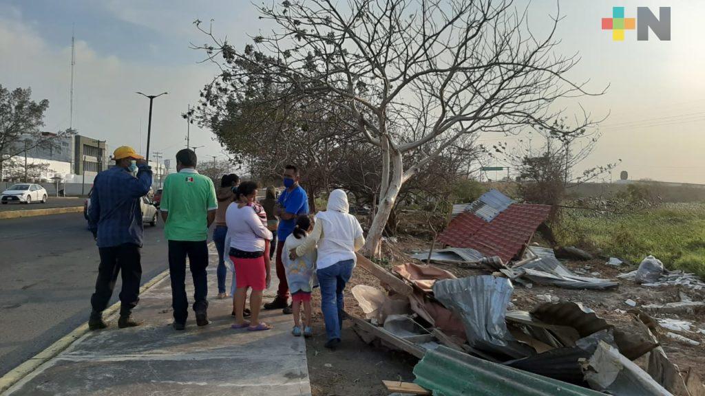 Las 14 familias desalojadas permanecerán en el área, a la intemperie al no tener una vivienda donde refugiarse.