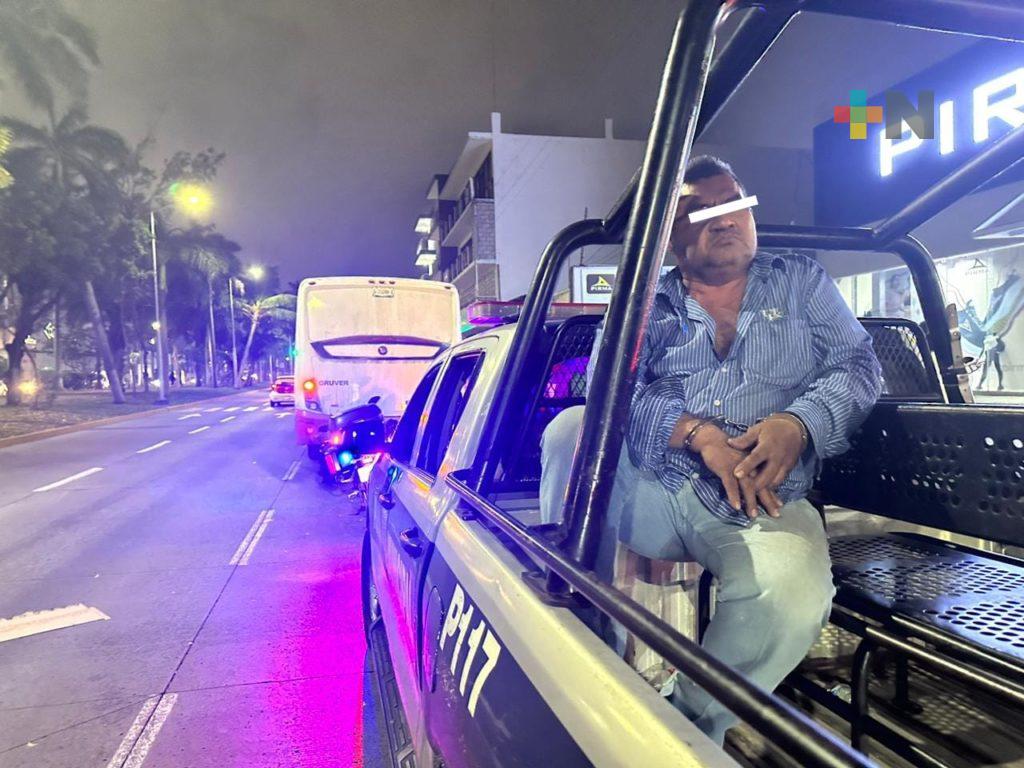 A pesar del accidente, el chofer siguió su camino hasta que automovilistas lo detuvieron unas tres cuadras más adelante.