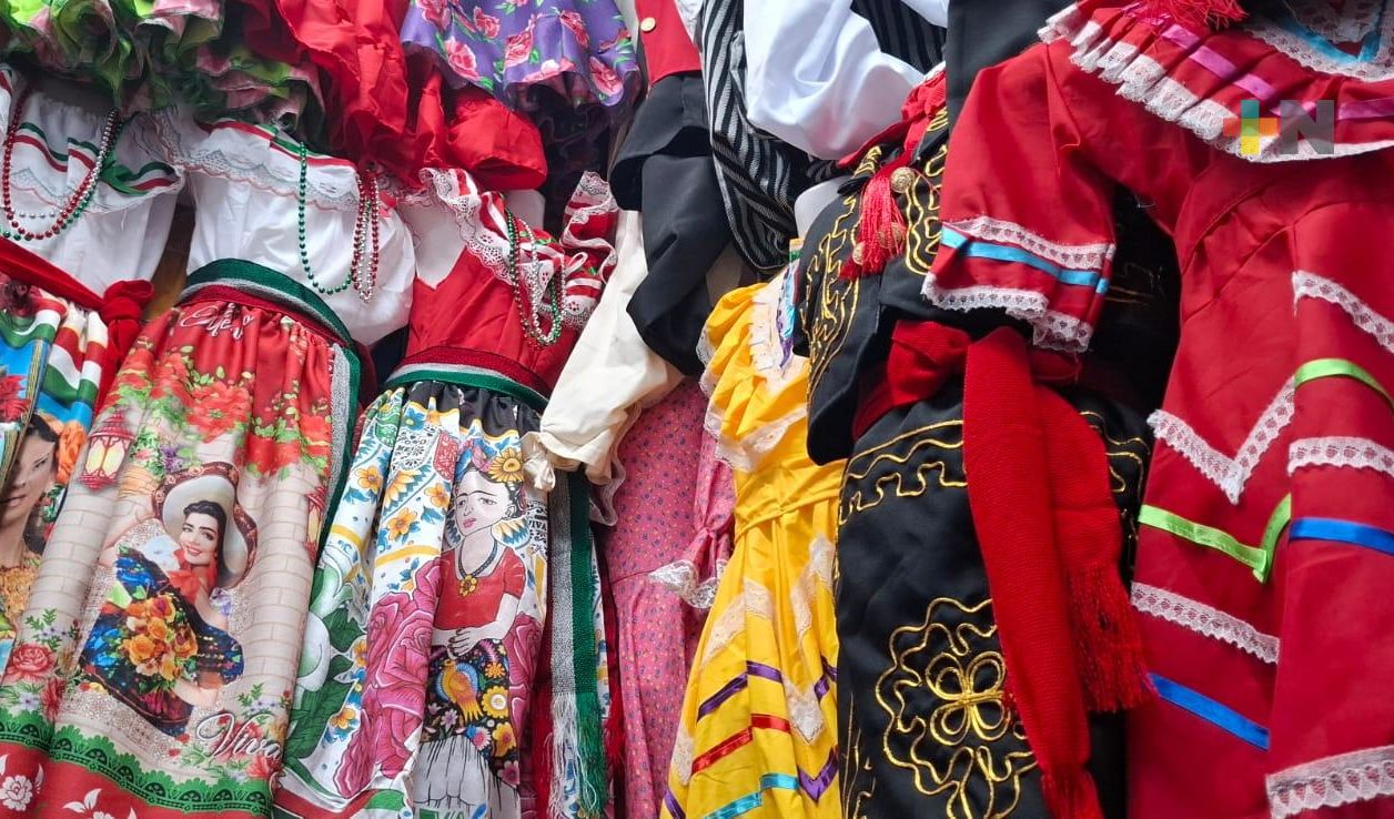 Xalapa, Ver.- Trajes para caracterizar a personajes de la Independencia de México como Miguel Hidalgo, Iturbide o Ignacio Allende, además de sombreros de charro, vestidos de chinas poblanas, escaramuzas y moños tricolores adquieren personas en Xalapa para celebrar los festejos patrios.