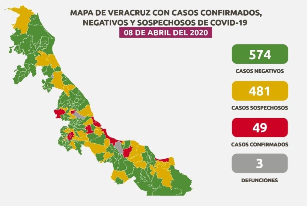 Con información de la atención proporcionada por todas las instituciones del sector salud y privadas, se han estudiado en la entidad 104 casos sospechosos de tener este padecimiento; 574 de ellos han sido descartados de tener la enfermedad, ya que la prueba de laboratorio dio resultado negativo, 481 aún se encuentran en investigación (158 actuales, sin antecedente de viaje o contacto), distribuidos en 64 diferentes municipios del estado, mismos que puede consultar en el mapa interactivo de la página de gobierno coronavirus.veracruz.gob.mx.