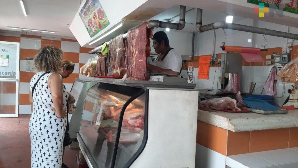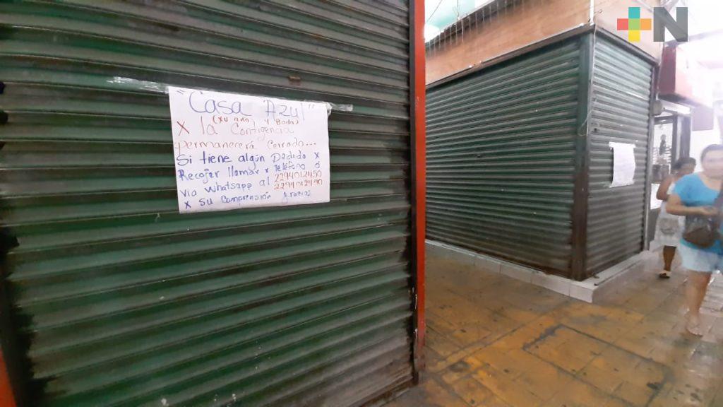 Por los pasillos del mercado se observan locales cerrados, mientras que los de frutas, verduras y productos cárnicos se mantienen abiertos, sin embargo, las ventas han decaído.