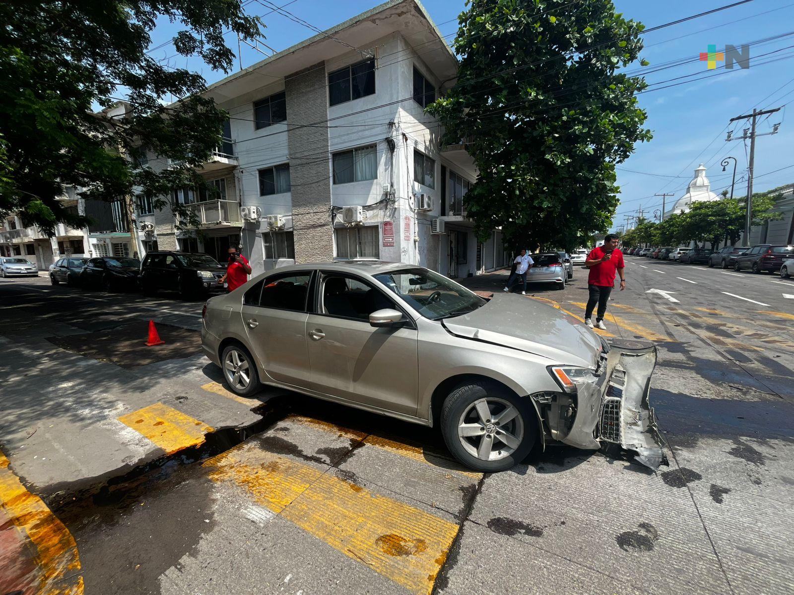 Veracruz, Ver.- Un accidente vehicular ocurrió esta mañana en la intersección de la calle José Mariano Abasolo y la avenida José María Valentín Gómez Farías, en el barrio de La Huaca del centro histórico de Veracruz.