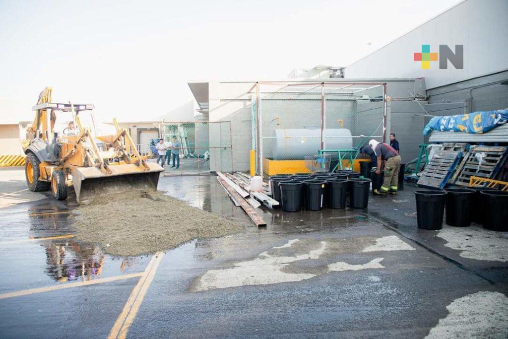 Autoridades atienden fuga de combustible en tienda de autoservicio de Boca del Río