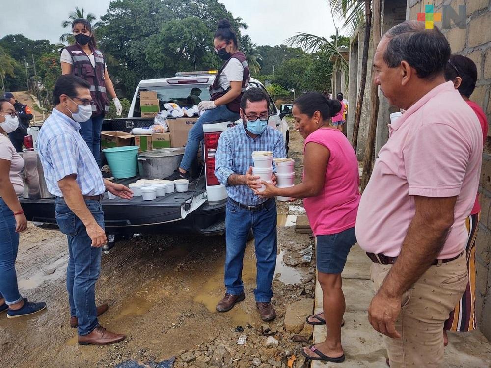 Uno de los puntos atendidos con apoyo alimentario fue el Ejido Manantiales donde las familias resultaron afectadas por las inundaciones que trajo el desbordamiento del Río Aguadulcita.
