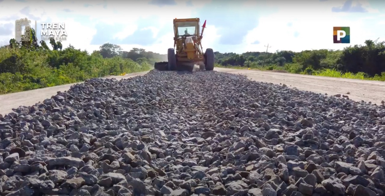 Los trabajos de construcción del Tren Maya avanzan en las estaciones Villa El Triunfo, en Balancán, Tabasco, y Edzná, en Campeche, junto con tendido de balasto, conformación de terraplén, construcción de pasos de fauna y generales, bases de montajes de rieles, instalación de postes para catenaria y colocación de durmientes.