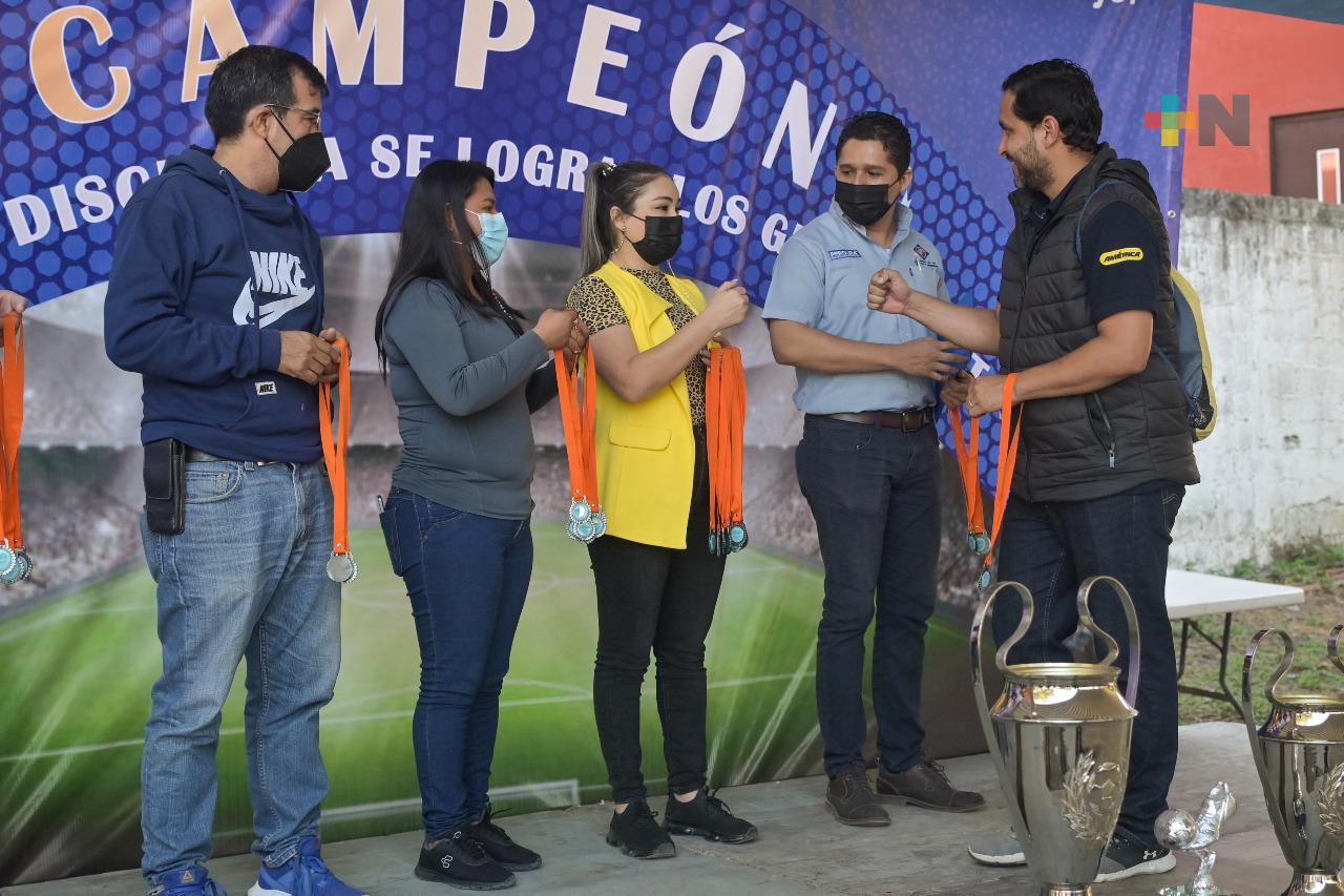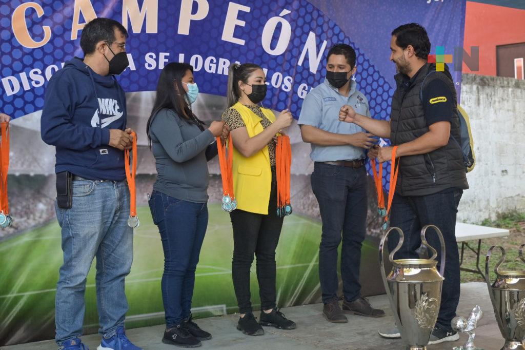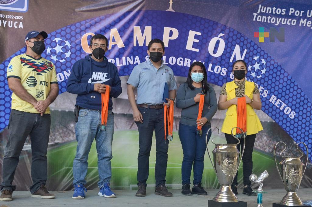 Tantoyuca, Ver.- Para el ayuntamiento de Tantoyuca el deporte sigue siendo una de las actividades que debe de seguirse fomentando, durante este 2022 en la liga de fútbol en categoría veteranos en su último encuentro de una final, el gobierno local fue participe del respaldo que hace hacia la juventud y a las personas adultas; encargados del Comité del Deporte, el equipo campeón y la síndico, Claudia González mencionaron sobre ése respaldo.