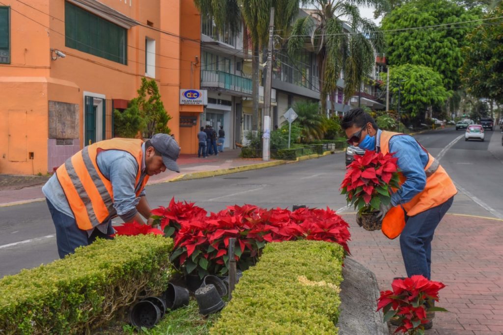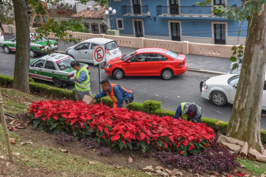 Xalapa, Ver.- Para mejorar la imagen urbana de la ciudad, el Ayuntamiento de Xalapa, a través de personal del Departamento de Mantenimiento Ambiental y Parques y Jardines, colocará 8 mil flores de Nochebuena en parques y áreas jardinadas del municipio.