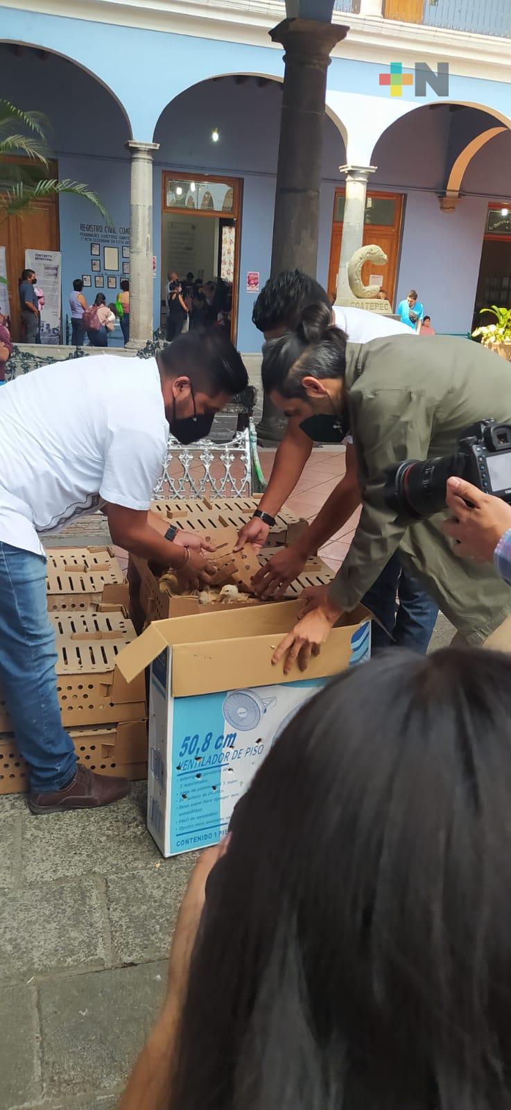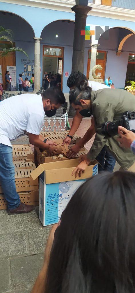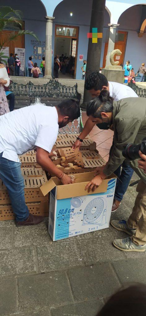 Coatepec, Ver.- En colaboración con los gobiernos municipal, estatal y federal, el ayuntamiento de Coatepec entregó 500 pollitos en paquetes de hembras y macho de la raza “Rhod Island Red», para las actividades de traspatio.