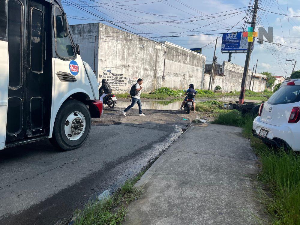 Baches y fuga de agua complica tránsito de ciudadanía en calle Jiménez sur de la ciudad de Veracruz