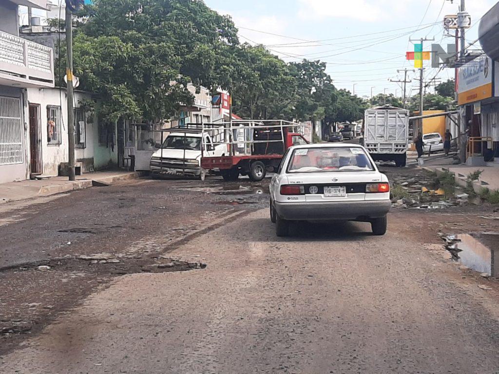 Baches y fuga de agua potable hacen intransitable la avenida Madre Selva de Veracruz