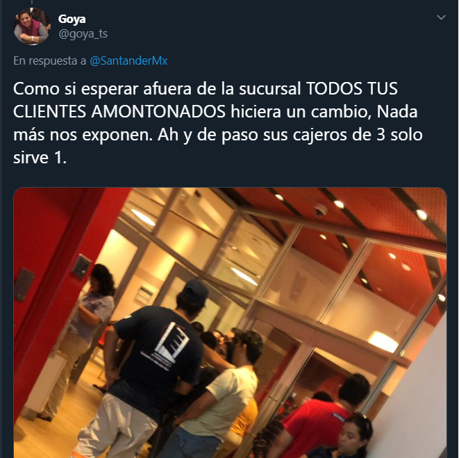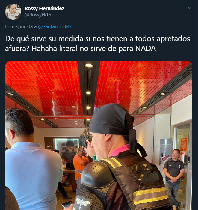 Sin embargo la medida ha generado cierto malestar en algunos de sus clientes, quienes se han manifestado en redes sociales por las largas filas que ahora se generan al exterior de los inmuebles y reportan que se da mayor cercanía con otras personas ante lo reducido de los espacios en los cajeros automáticos.