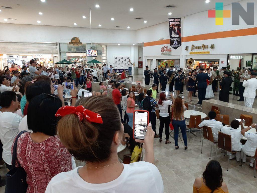 Minatitlán, Ver.- La banda de música de la VI Región Militar «La Boticaria, Veracruz» realizaron un ‘flashmobi en una plaza comercial del municipio de Minatitlán.