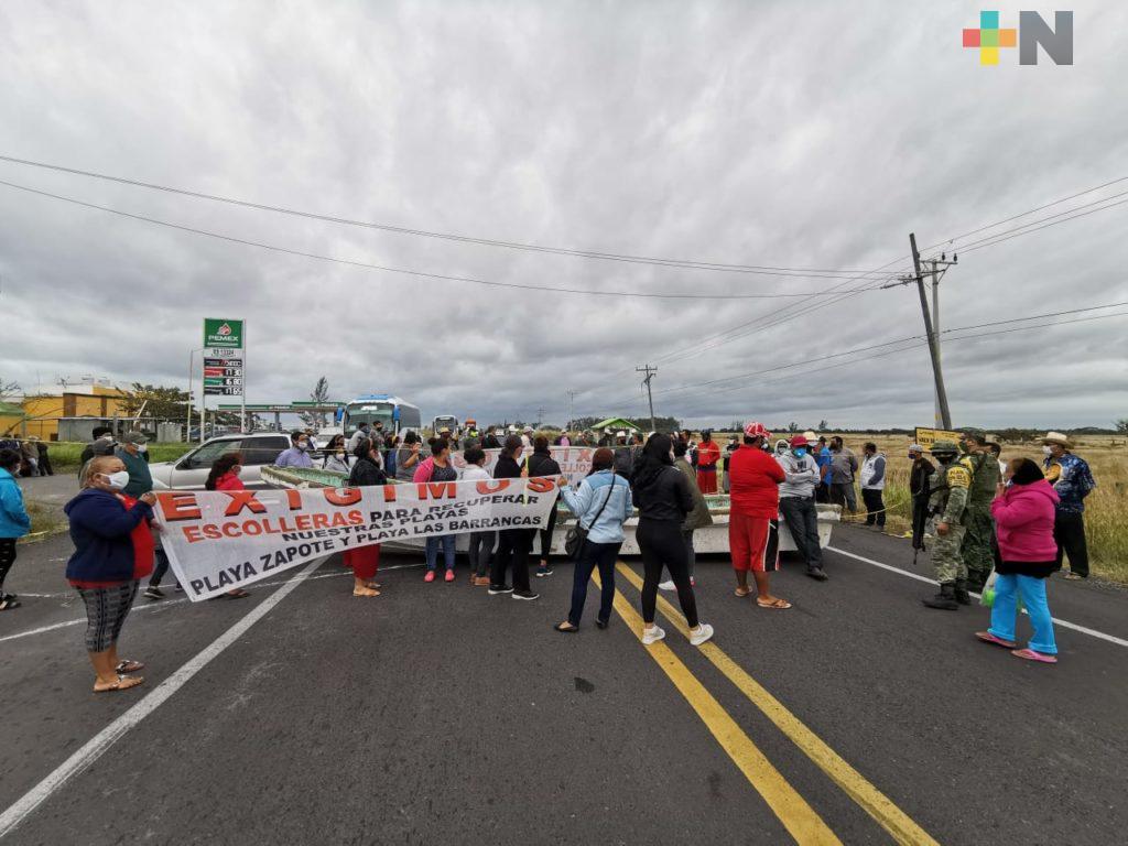 Bloquean carretera, piden construcción de rompeolas en playas del municipio de Alvarado
