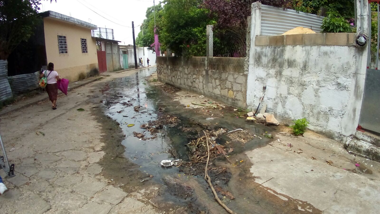 El agua pestilente desciende desde el callejón hasta la avenida principal. «Tapamos el paso porque el tubo está tirando mucha agua, nadie quiere venir a componerlo; son aguas negras que vienen de otras colonias. Todo ese apeste nos perjudica a nosotros que vivimos aquí en frente y toda esa agua corre hacia abajo, tengo cuatro niños, nos hemos enfermado y nadie nos hace caso», declaró la señora Paula Gutiérrez Hernández, quien vive frente a la tubería.