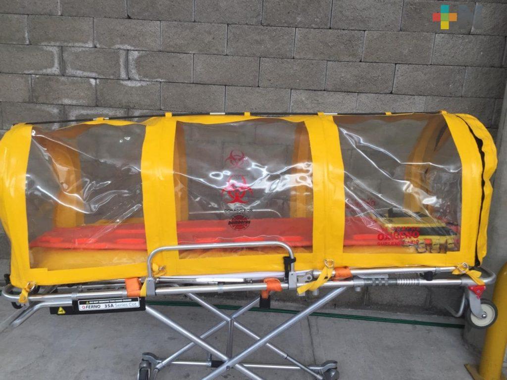 Veracruz, Ver.- Los bomberos conurbados Veracruz-Boca del Río disponen ya de 10 cápsulas herméticas para traslados en ambulancia de pacientes con COVID-19.