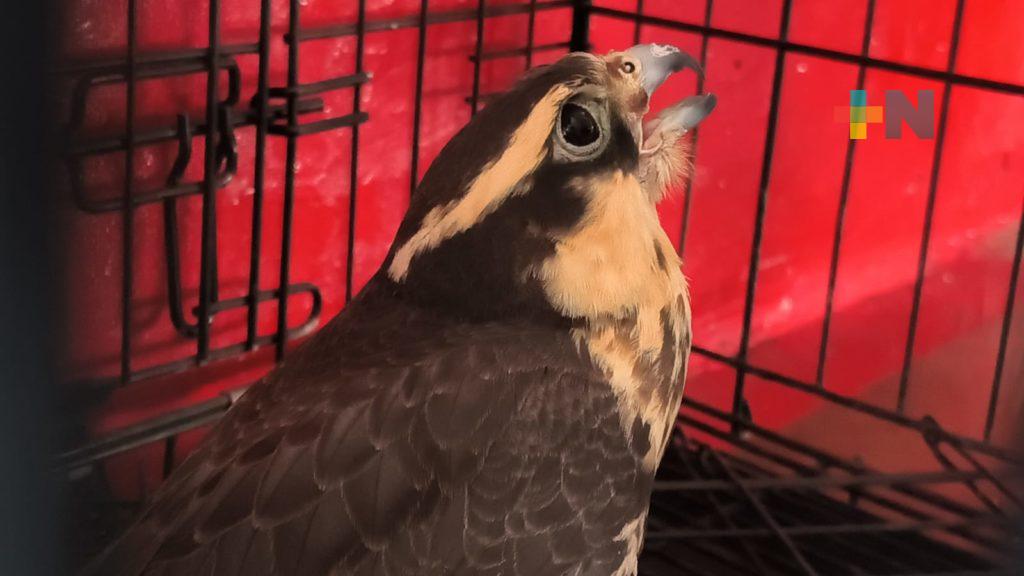 Veracruz, Ver.- Elementos de Bomberos Municipales de Veracruz rescataron un ejemplar de halcón aplomado en el fraccionamiento Xana, al poniente del puerto de Veracruz.