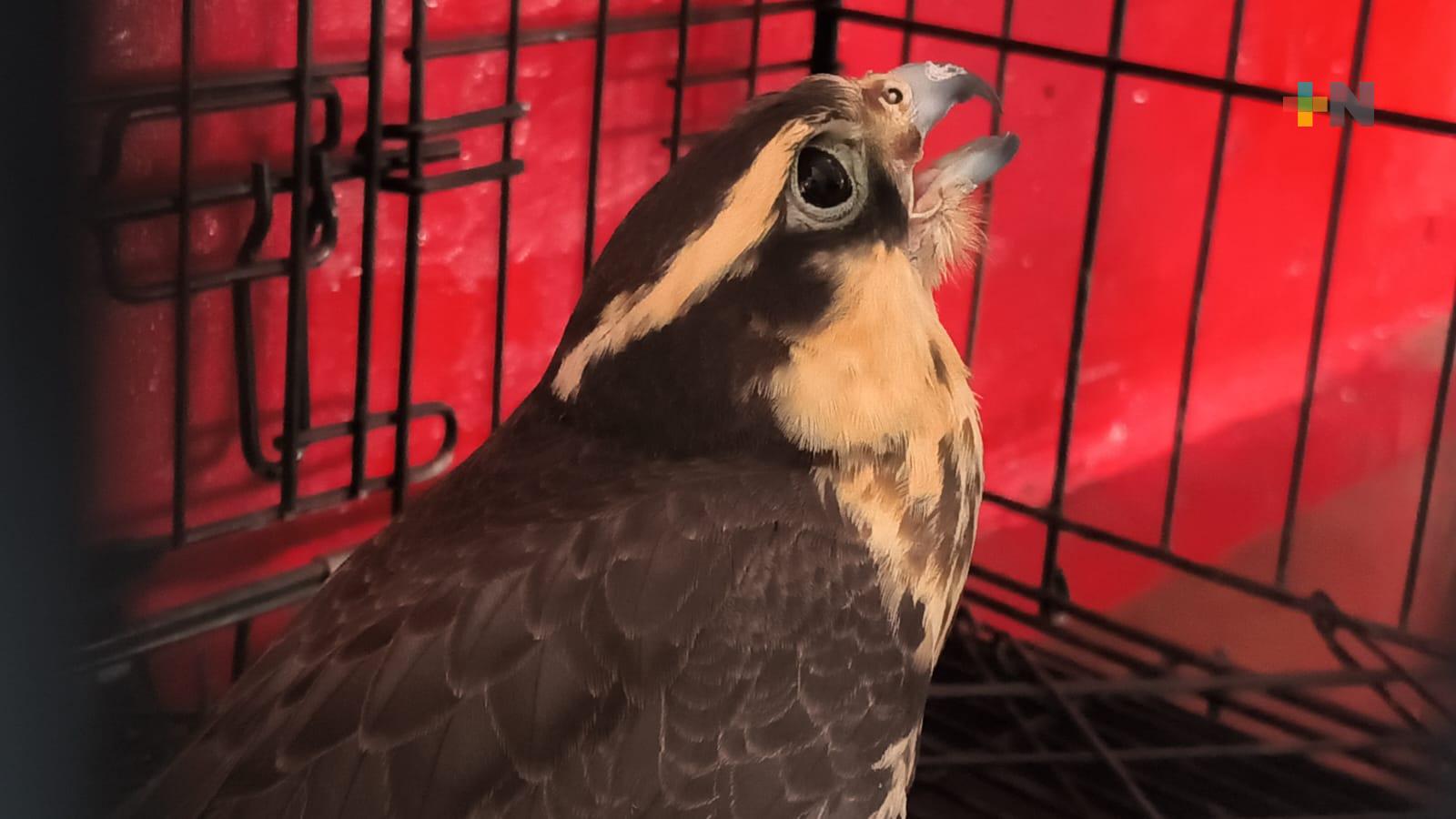 Veracruz, Ver.- Elementos de Bomberos Municipales de Veracruz rescataron un ejemplar de halcón aplomado en el fraccionamiento Xana, al poniente del puerto de Veracruz.