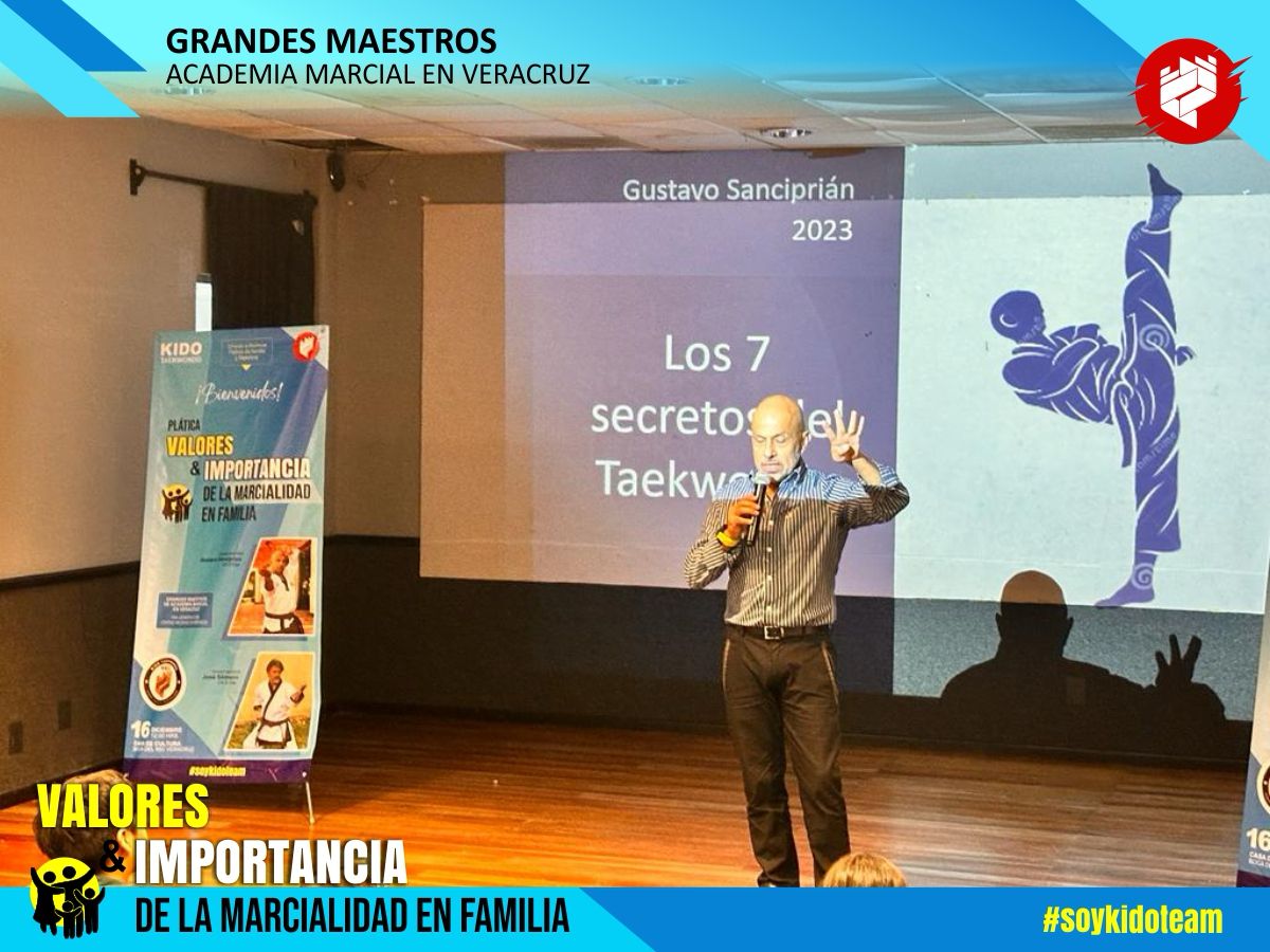 Veracruz, Ver.– Con éxito se llevó a cabo la plática sobre “Valores e importancia de la marcialidad en familia”, evento desarrollado en días pasados por la organización KIDO Taekwondo, informó el director general, Yaseff Zamora Alvarado.