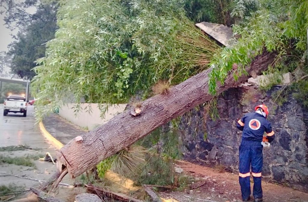 A las 6:45 horas de este domingo, la Dirección de Protección Civil recibió el reporte de caída de un árbol al interior de la escuela Antonio María de Rivera por el reblandecimiento del suelo.