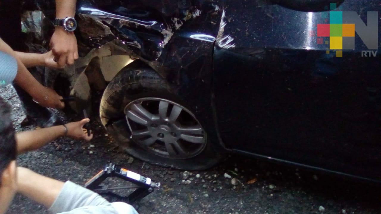 Afortunadamente, el impacto de la roca lo recibió el vehículo de manera lateral, por lo que no hubo lesionados, aunque sí registró considerables daños a la altura de la llanta delantera.
