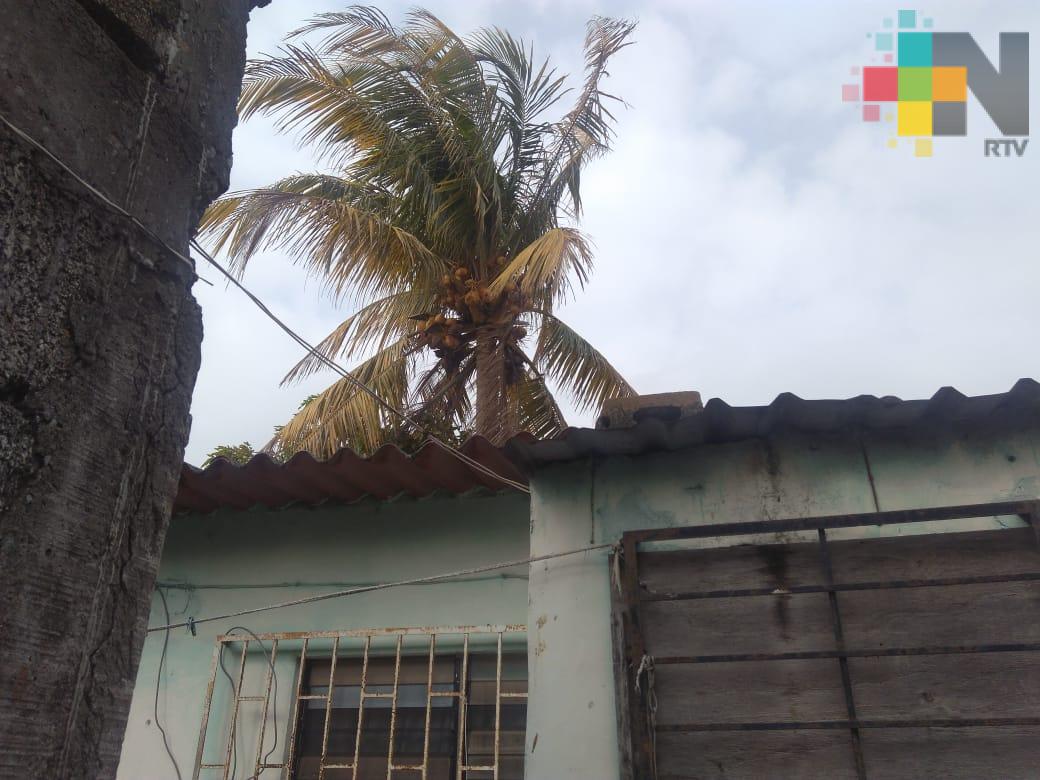 Veracruz, Ver.- Durante el último evento de norte qué alcanzó rachas de 100 kilómetros por hora, varios cocos cayeron sobre la vivienda de la señora Wenceslada Ávalos, rompiendo el techo de su hogar, ubicado en la colonia Fernando Gutiérrez Barrios.