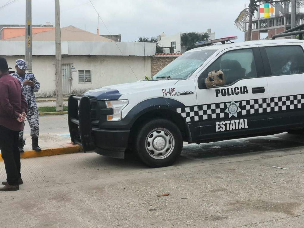 Caída de espectacular daña un coche y una patrulla; una mujer lesionada