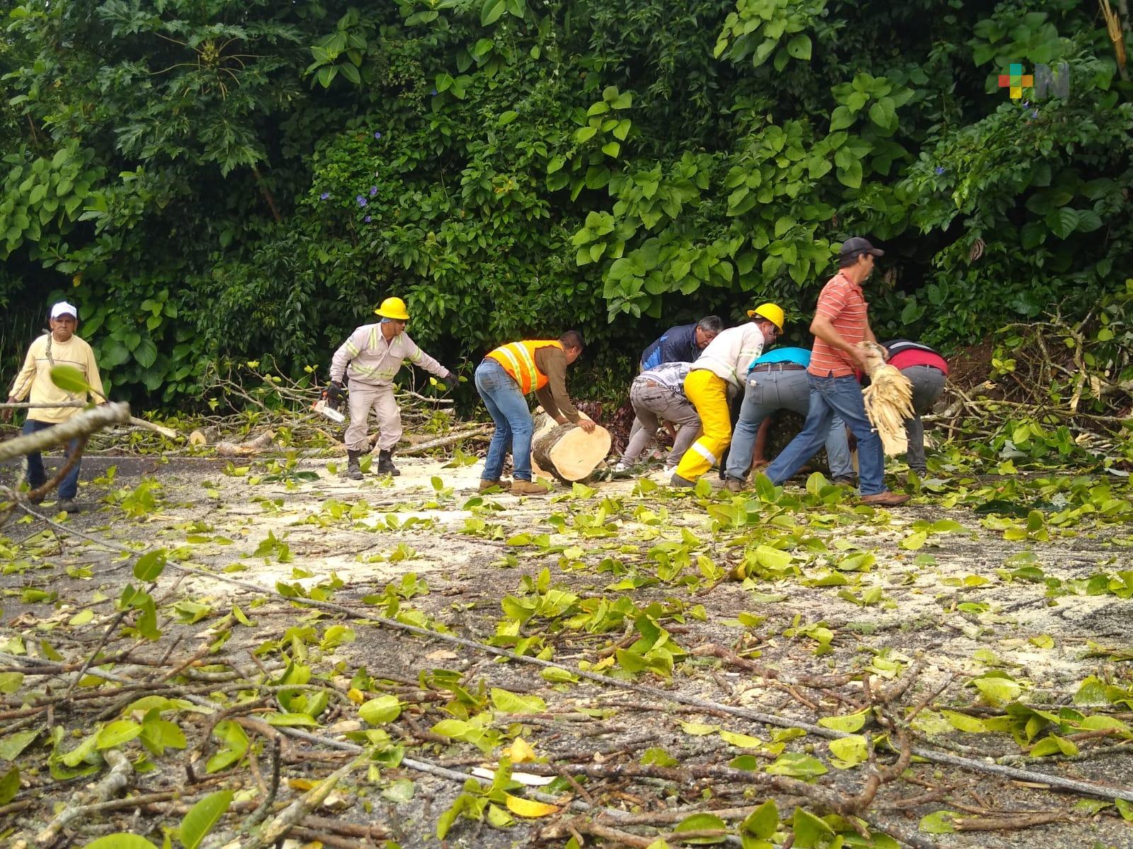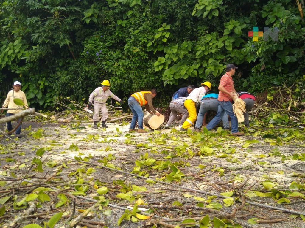 El reblandecimiento generado por las lluvias hizo que el poste de luz que se ubica en la carretera Misantla-Yecuatla, a la altura de la comunidad Plan de Almanza colapsara y cayera sobre la carretera estatal.