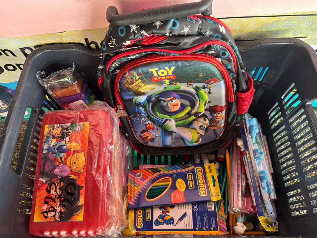 “Lapiceros, lápices, unas bolsas, colores y hasta mochilas, había dos, tres mochilas y ya nada más queda una mochila, la gente se lo está llevando, iban felices y contentos».
