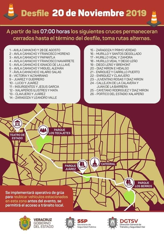Xalapa, Ver.- Previo al desfile, conmemorativo al Aniversario de la Revolución Mexicana, que comenzó cerca de las 10 de la mañana fueron cerradas las calles del centro de la ciudad, el operativo de las corporaciones de Tránsito y Seguridad Pública inició desde de las siete horas.