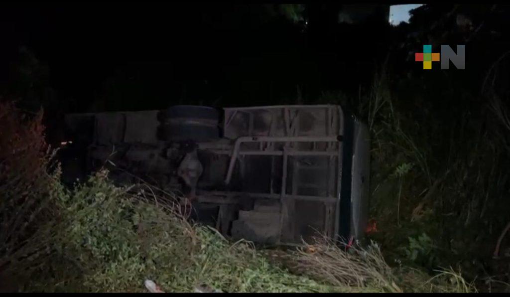 Camión de pasajeros vuelca en carretera antigua Coatzacoalcos-Minatitlán, hay 50 personas lesionadas