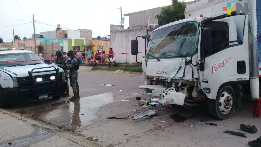 Camión refresquero se impactó en vivienda en Coatzacoalcos; tres personas lesionadas