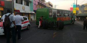 Coatzacoalcos, Ver.- Esta tarde, una unidad del transporte público se quedó sin llantas traseras cuando circulaba sobre la avenida Universidad, en Coatzacoalcos.