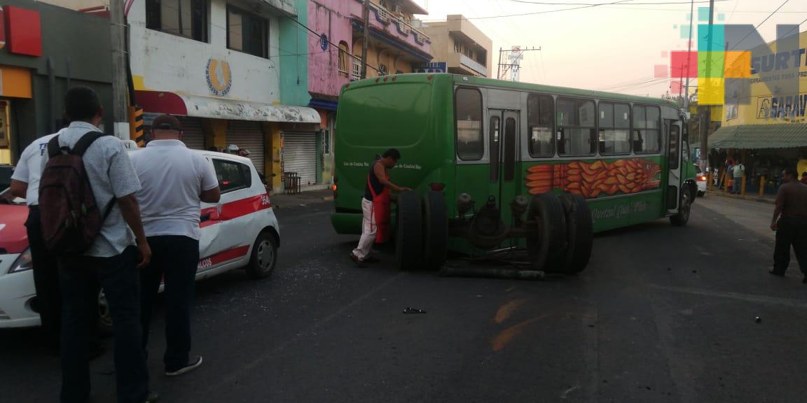 Coatzacoalcos, Ver.- Esta tarde, una unidad del transporte público se quedó sin llantas traseras cuando circulaba sobre la avenida Universidad, en Coatzacoalcos.