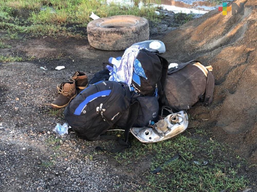 Minatitlán, Ver.- Una camioneta tipo pick up donde viajaban migrantes, sufrió un accidente sobre la autopista La Tinaja-Cosoleacaque, al sur de Veracruz, y al menos siete migrantes hondureños y un mexicano resultaron lesionados y fueron trasladados por Protección Civil a un hospital en Minatitlán.