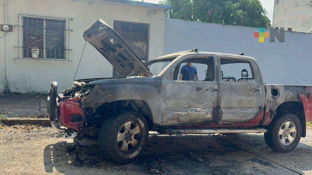 Coatzacoalcos, Ver.- Una camioneta se incendió en la colonia Centro de Coatzacoalcos, justo frente a las instalaciones de un partido político.