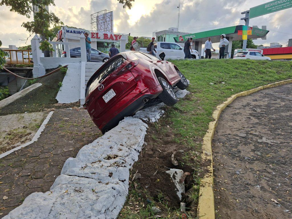 Boca del Río, Ver.- Una camioneta particular, tripulada por menores de edad en aparente estado de ebriedad, estuvo a punto de caer al río Jamapa tras un accidente ocurrido en los alrededores del Palacio Municipal de Boca del Río.