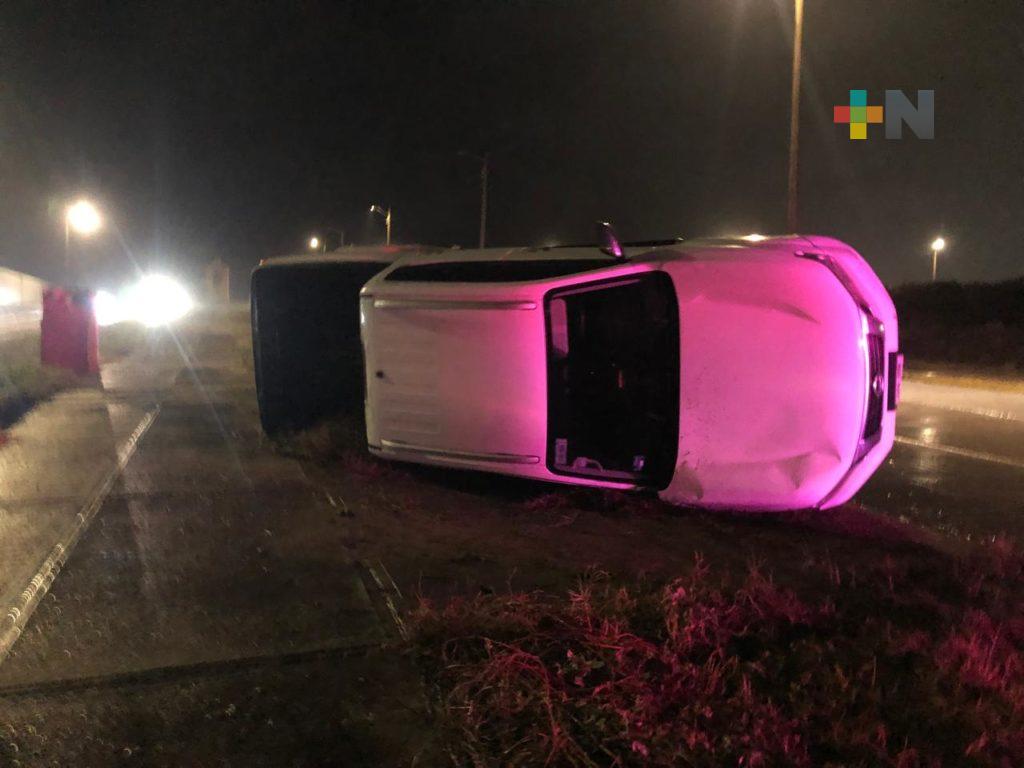 La unidad siniestrada circulaba de poniente a oriente cuando su conductor perdió el control, se salió de la carpeta asfáltica, impactó el camellón central y volcó sobre uno de sus costados.