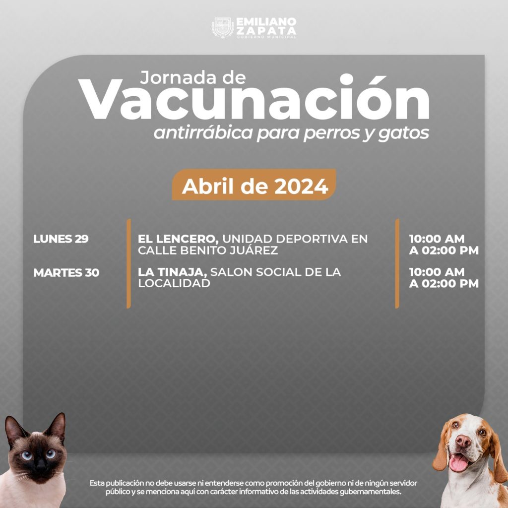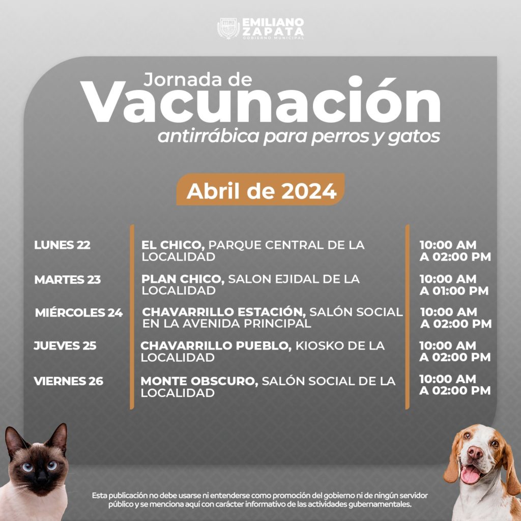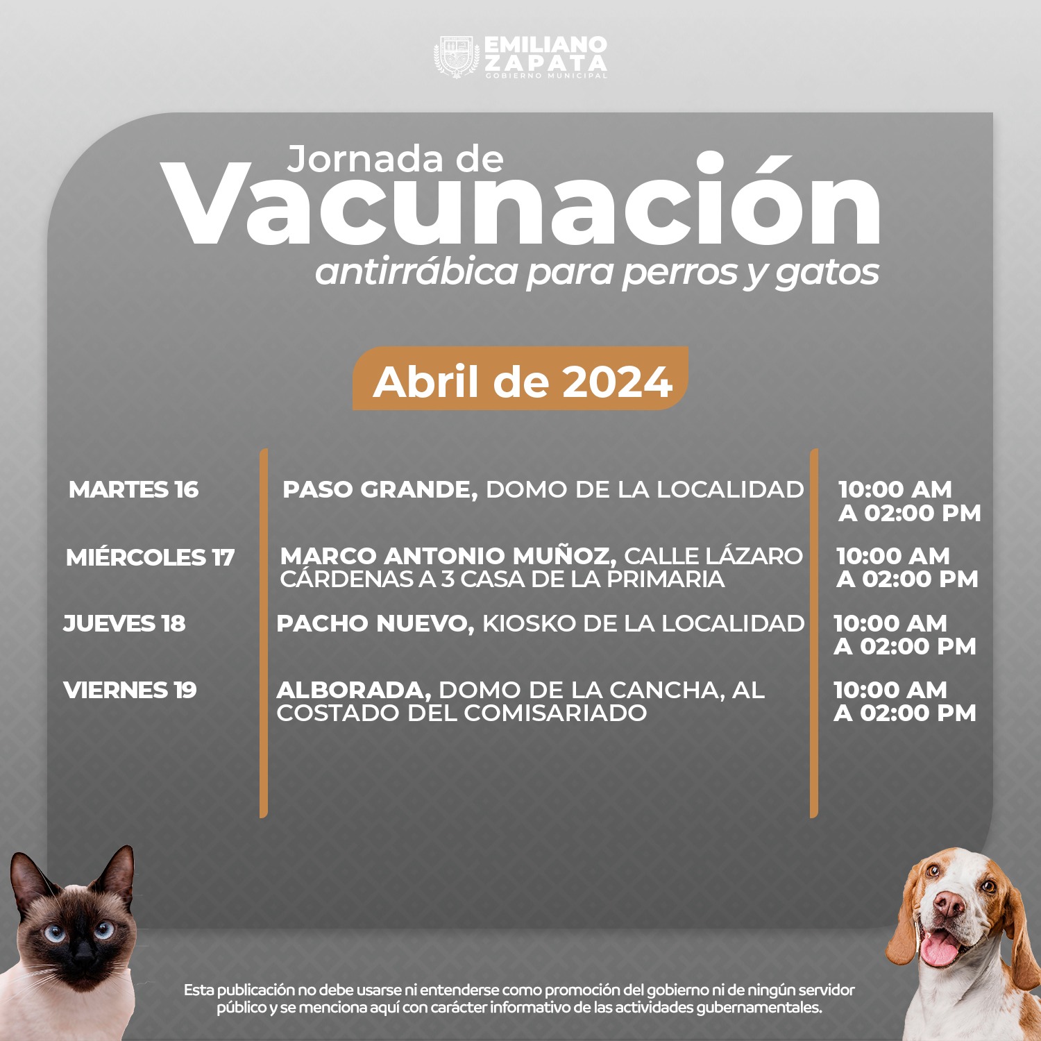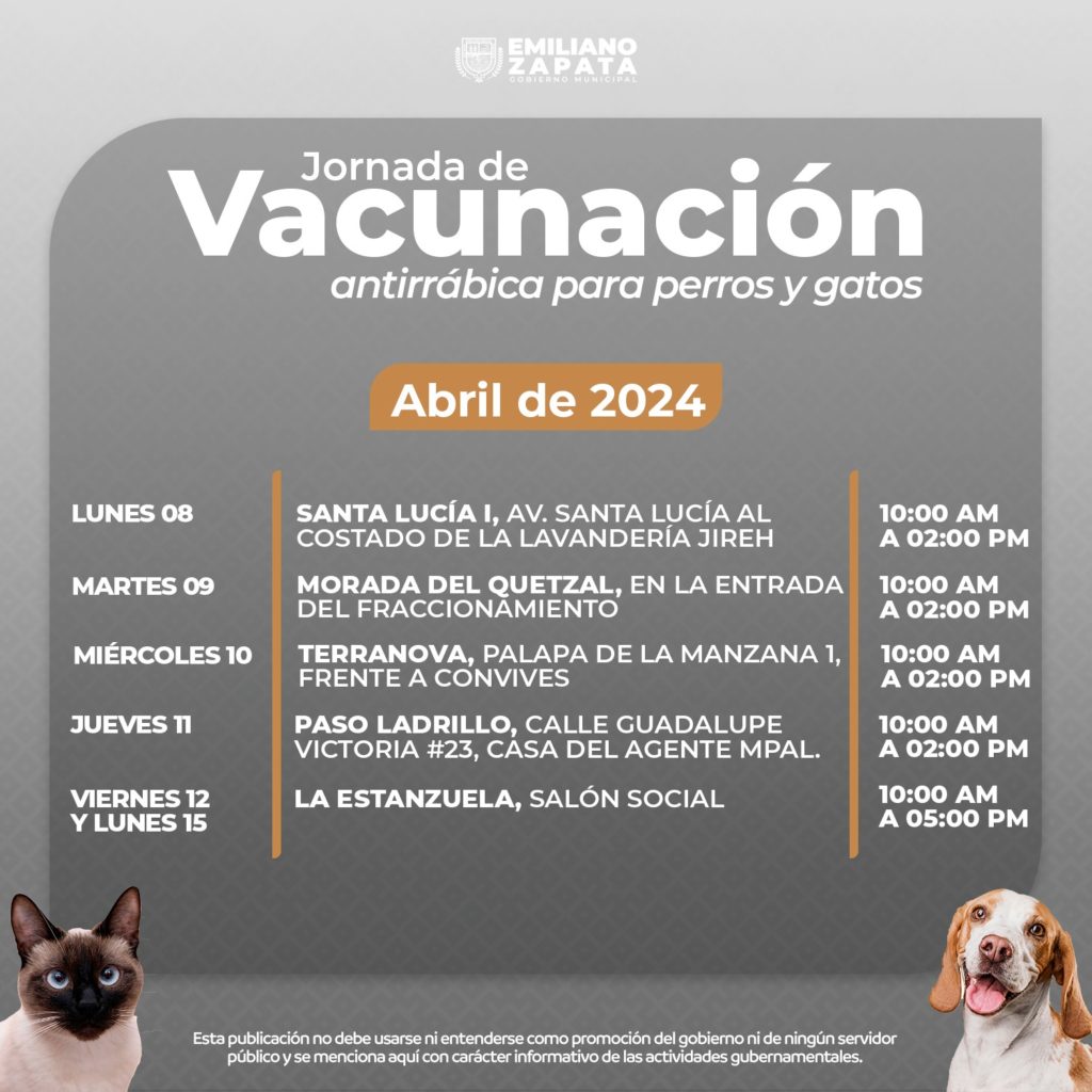 Campaña de vacunación antirrábica para perros y gatos en Emiliano Zapata