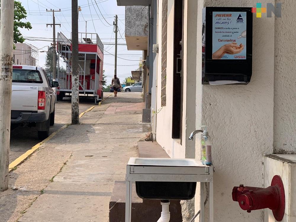 Canaco Coatzacoalcos instala lavamanos afuera de sus instalaciones