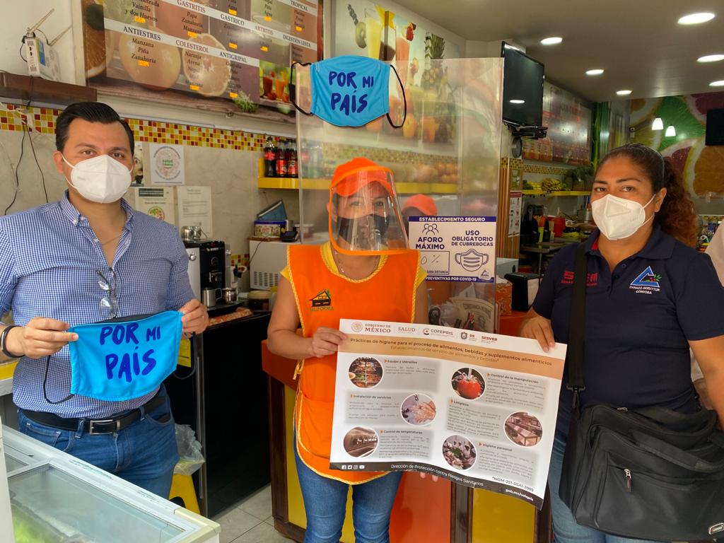 Córdoba, Ver.- Con el propósito de impulsar el uso correcto del cubreboca como principal medida preventiva ante el COVID19, la Cámara Nacional de Comercio (CANACO) y el Ayuntamiento de Córdoba realizaron operativo de concientización en el comercio establecido.