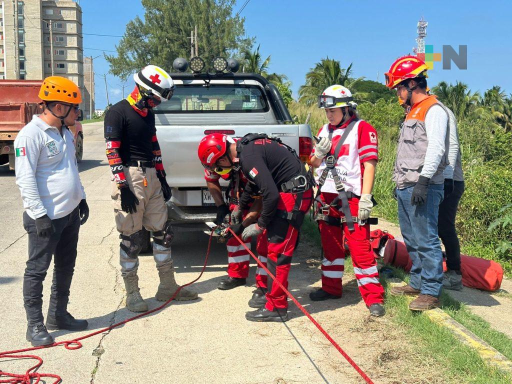Coatzacoalcos, Ver.- Simulando el rescate de una persona que cayó con todo y su automóvil en un barranco tras un incidente vehicular, es como se desarrolló parte del curso de rescate vertical y rescate en algunos bajos a personal de emergencias y protección civil de la región sur.