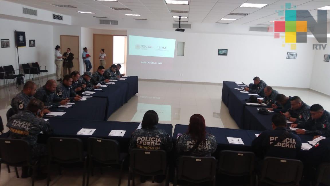 Veracruz.- Más de 200 elementos de la Policía Federal, asignados a la Guardia Nacional (GN) y comisionados a la Delegación Federal del Instituto Nacional de Migración (INM) en Veracruz, son capacitados sobre temas de jurídicos y de derechos humanos con la finalidad de garantizar un trato humanitario a los migrantes que ingresan a territorio mexicano de manera irregular.