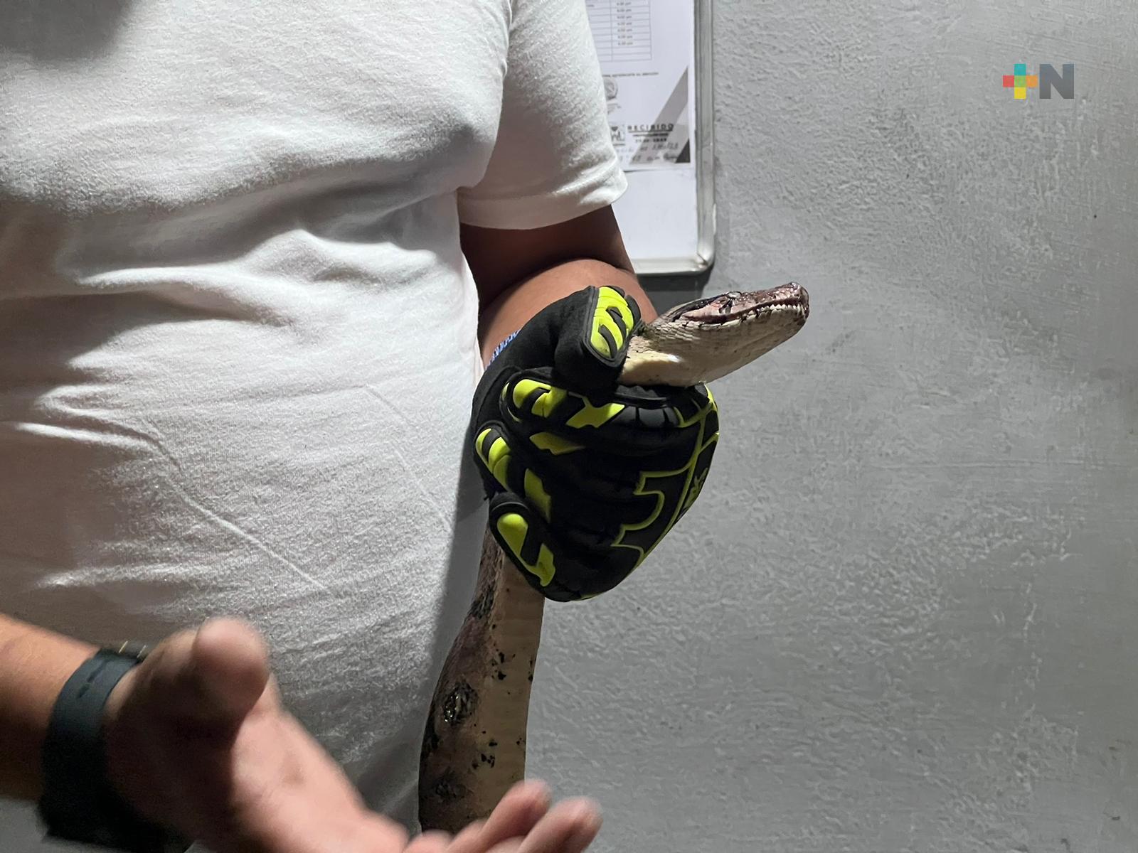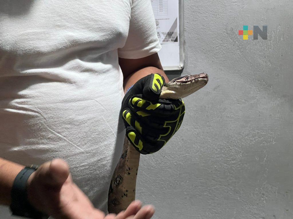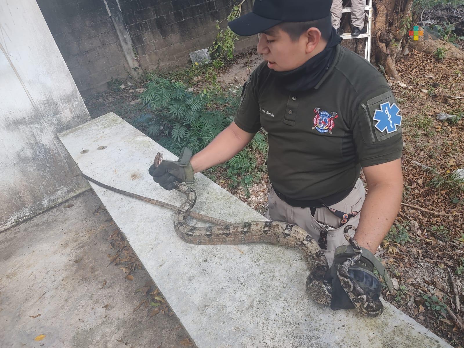 Cosoleacaque, Ver.- Elementos de Protección Civil y Bomberos de Cosoleacaque capturaron dos boas constrictoras que se encontraban en las instalaciones de un jardín de niños de la congregación de San Pedro Mártir.